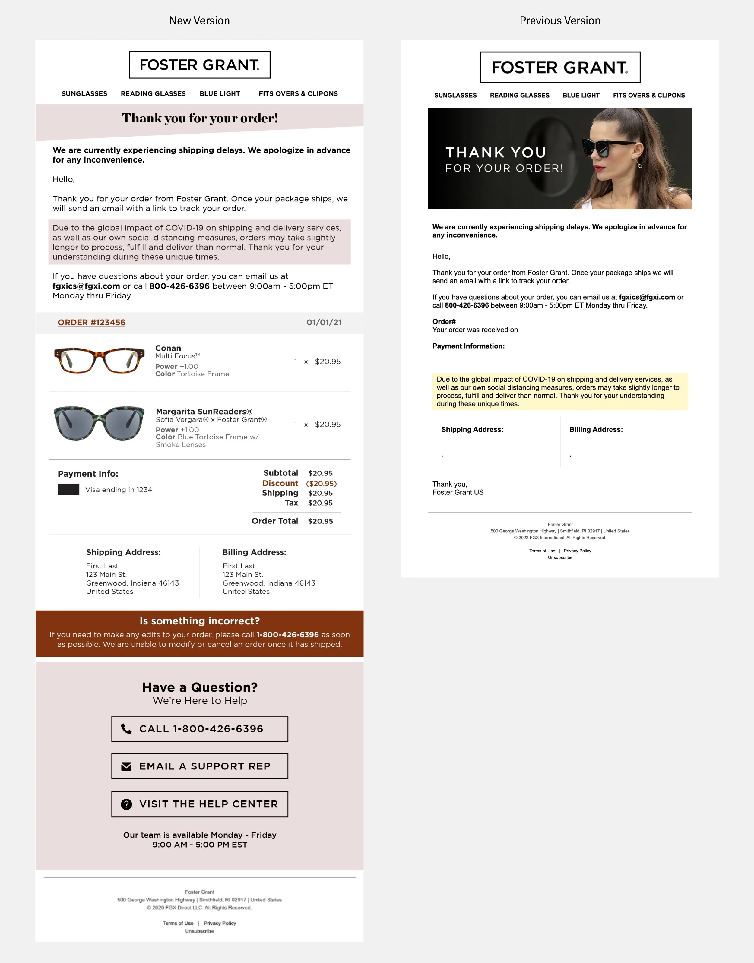 We reviewed the original versions of the triggered and transactional emails to not only update the design, but also see if we could improve the customer experience by adding or changing the content within the emails. After finalizing designs, I worked directly with our email specialist and developer to build out and QA the new versions.